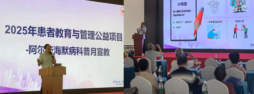 王亚丽副主任医师从长期管理的角度,围绕阿尔茨海默病的日常保健与家庭照护进行了系统全面的讲解。她分享了延缓认知衰退的日常保健方法,还就如何理解患者行为、合理照护等家属关心的问题,提供了专业的指导,缓解了家属们的焦虑与压力。