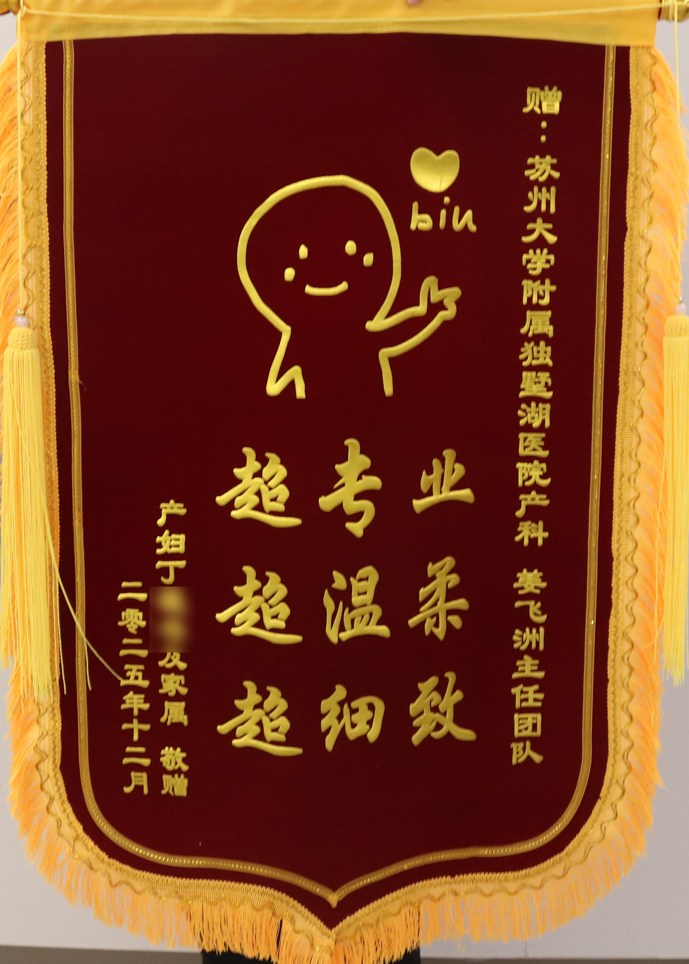 产妇丁女士及家属赠送锦旗感谢我院妇产科姜飞洲副主任医师团队