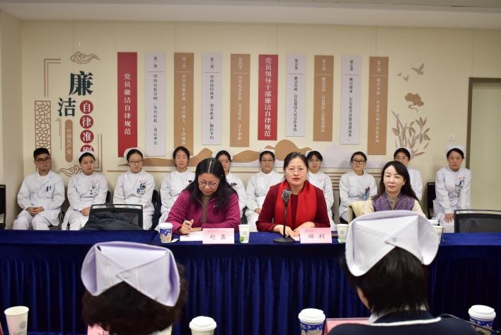 王洁主任向苏州大学护理学院一行详细介绍了医院在护理方面的发展规划。她表示,苏大附四院护理部始终重视人才培养,积极推行实习生双导师带教制度,并开展一系列举措提升护理学生的综合素质。医院会持续保障学生安全、关注成长,配合学院教学,推动护理教育与实践有机融合、良性发展。希望未来我院能够在护理教学、科研以及实习等多个领域与护理学院开展更为紧密的合作,力求协同共进共促发展。
